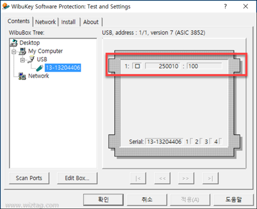 컴퓨터에 연결된 WIBU-KEY의 Entry 확인