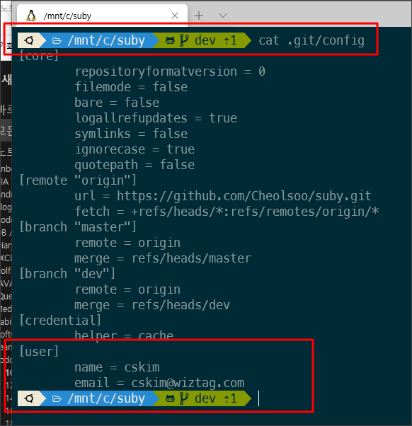 git config user.email "cskim@wiztag.com"