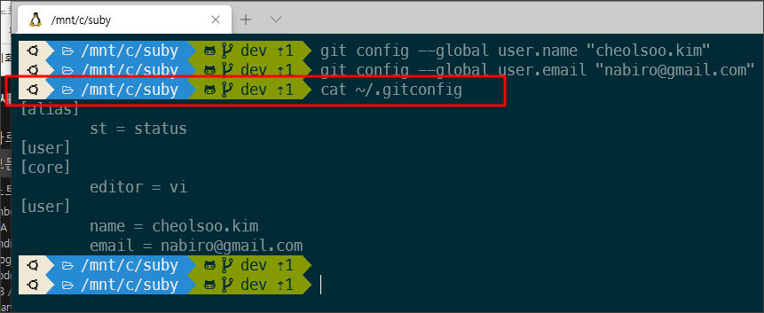 git config --global user.name "cheolsoo.kim" 명령어 실행하면 영향을 받는 파일은