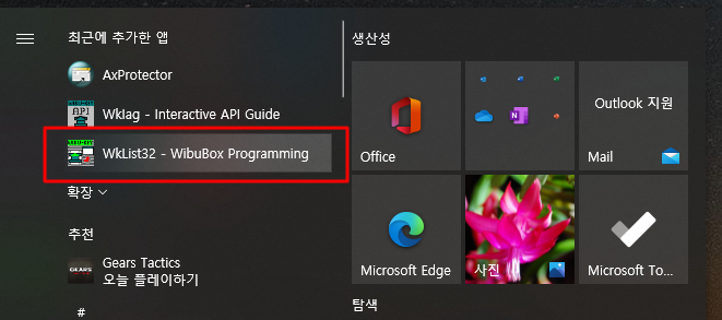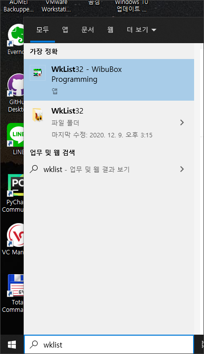 위와 같이 검색으로 WkList32 를 찾아서 실행하셔도 되고 시작 버튼에 있는 WkList32 를 실행하셔도 됩니다.