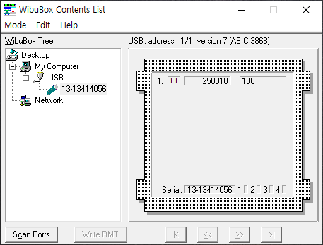 위의 화면은 WIBU-BOX/RU 또는 WIBU-BOX/RU+ 가 컴퓨터에 연결되어 있을 때 나타나는 화면입니다.